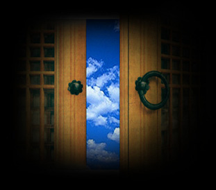 a porta quando esta se abriu sozinha.